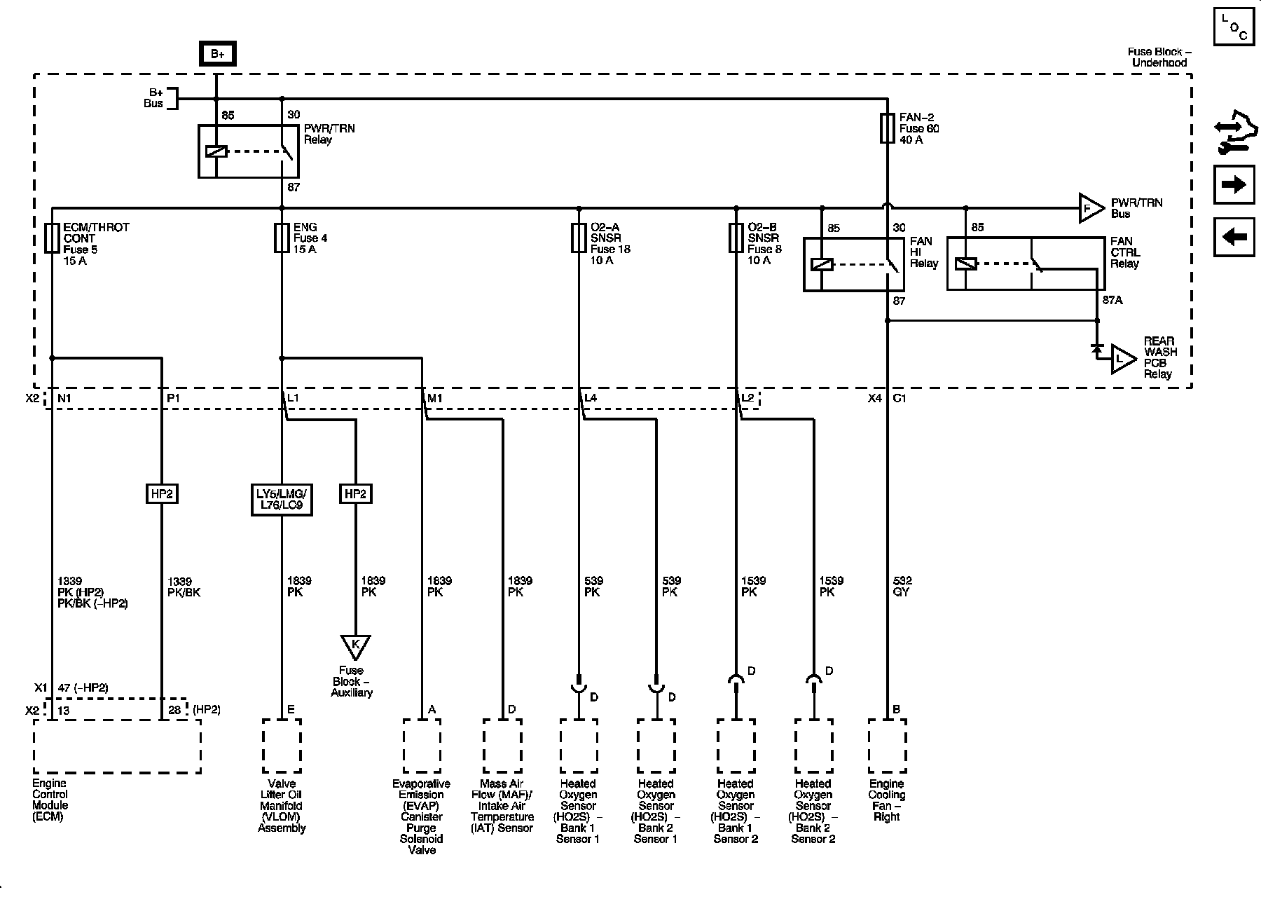 ECM/THROT CONT, ENG, O2-A SNSR, and O2-B SNSR Fuses