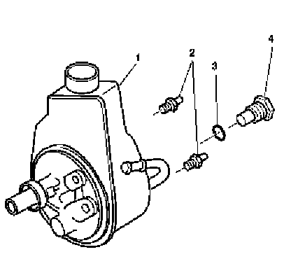 6. Install the power steering pump fitting (4) to the power steering pump assembly (1).
