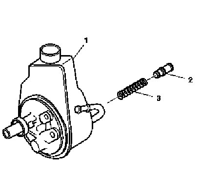 5. Remove the power steering pump flow control valve (2) and the power steering pump flow control valve spring (3) from the power steering pump assembly (1).