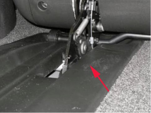 1. Remove the seat. Using seat removal handle #3 Only, pull straight rearward (do not lift) to slide seat back and remove.