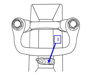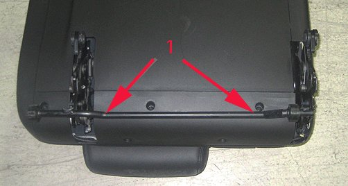 5. If the front floor latches are in the correct position and the condition still exists, visually inspect the seat roller bar (1) for a twisted or out of sync condition. The roller bar (1) is straight in the above image.