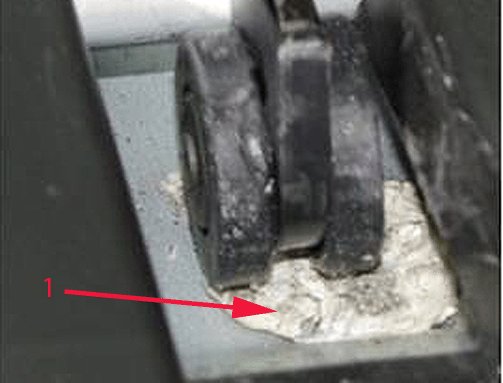 2. If the sealer (1) is making contact with the seat roller, remove the excessive sealer to allow the latch to fully seat to the striker.