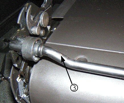 6. If the seat roller bar (2) appears to be twisted or out of sync, as shown in the above image, replace the roller bar (2).