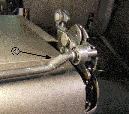 6. Apply tape to the inboard angled section of the seat roller bar (4). Make sure that the seam (gap when wrapping tape around bar) of this tape is NOT at the contact area/witness mark noted previously. Install tape to both seats.