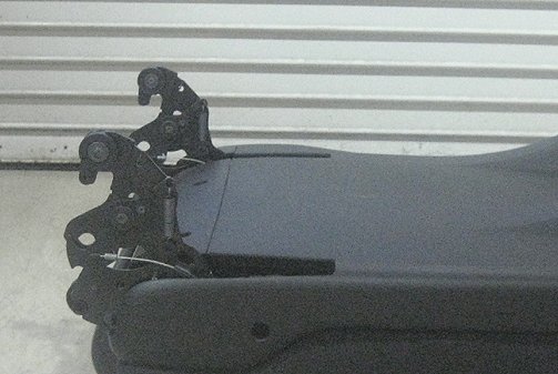 2. Place the seat on its back so the latches are visible. The above image shows the latches in the correct position.