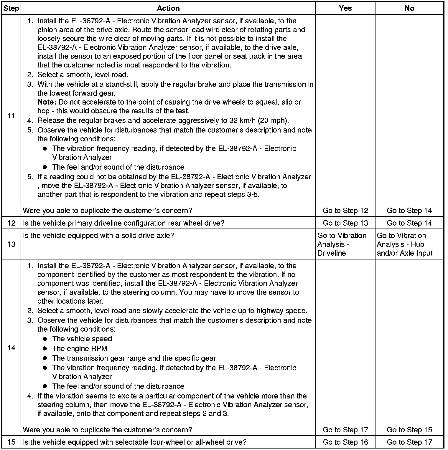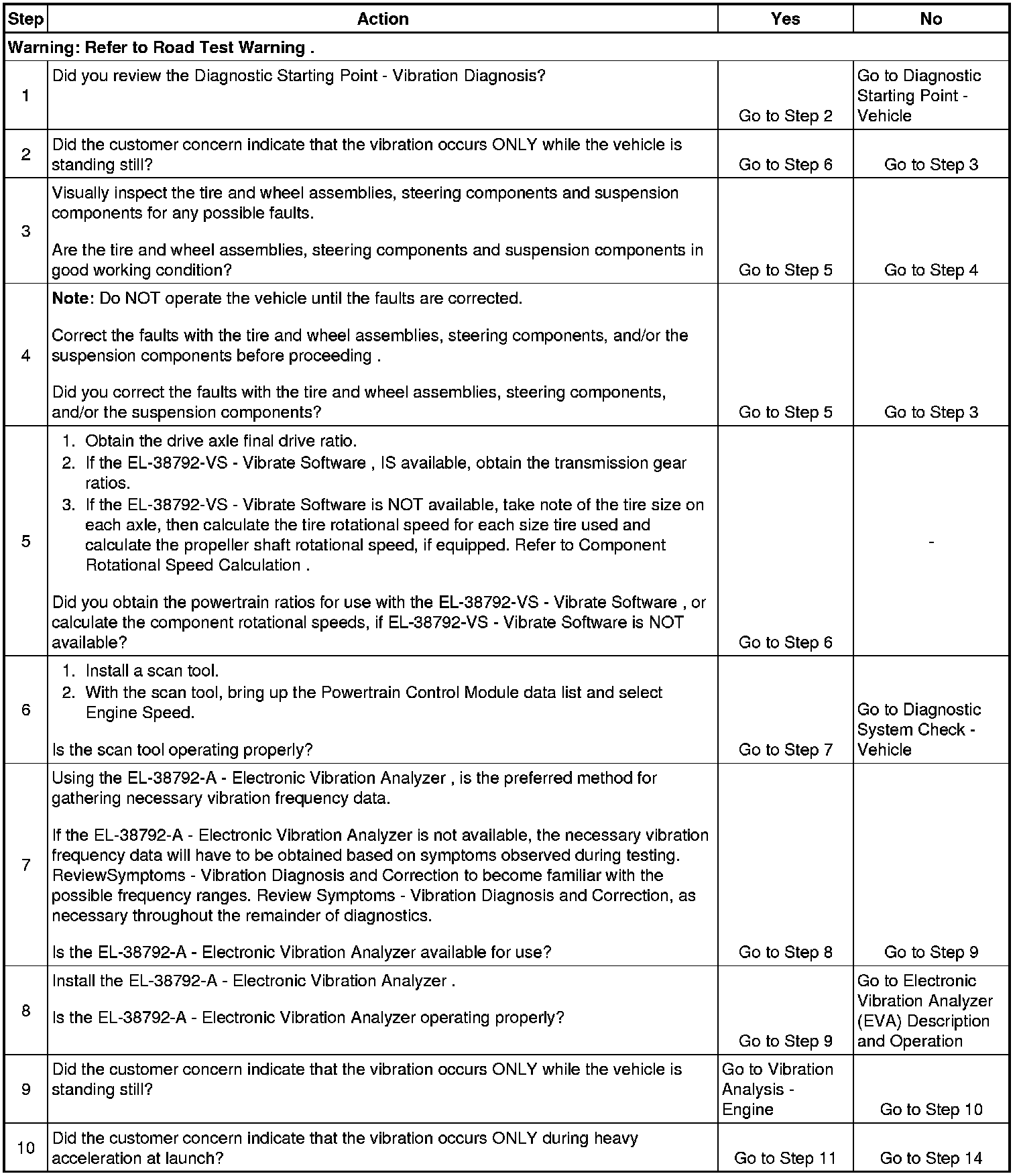 5. Obtaining rotational speed for the components rotating at tire/wheel speed is critical to systematically eliminating specific vehicle component groups. These component rotational speeds can be generated by using the EL-38792-VS - Vibrate Software , or through calculating them manually.