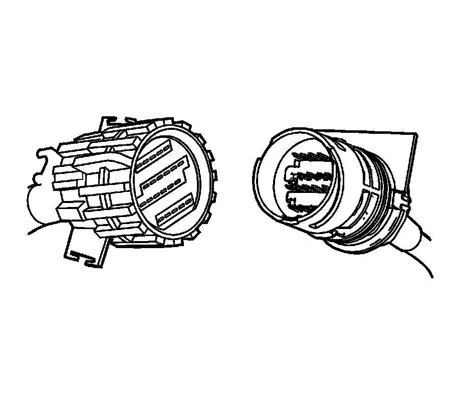 Important: The 24-way inline connector must be removed first due to clearance of the tab on the 16-way connector. Refer to 24-Way Automatic Transmission Inline Connector.