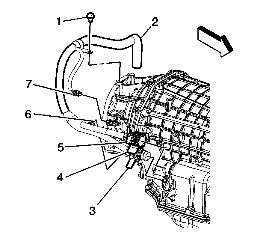 17. Connect the transmission electrical harness connector (7) to the vehicle speed sensor.