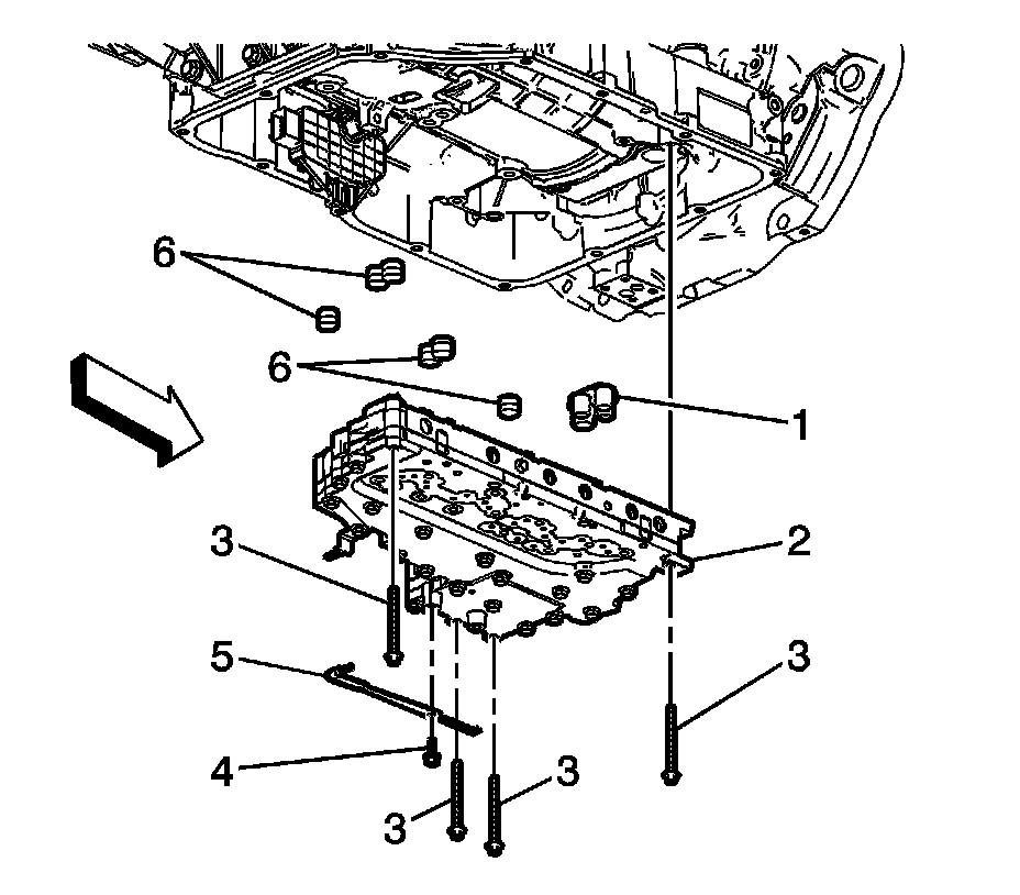 1. Remove the control solenoid valve and transmission control module assembly. Refer to Control Solenoid Valve and Transmission Control Module Assembly Replacement Service and Repair.