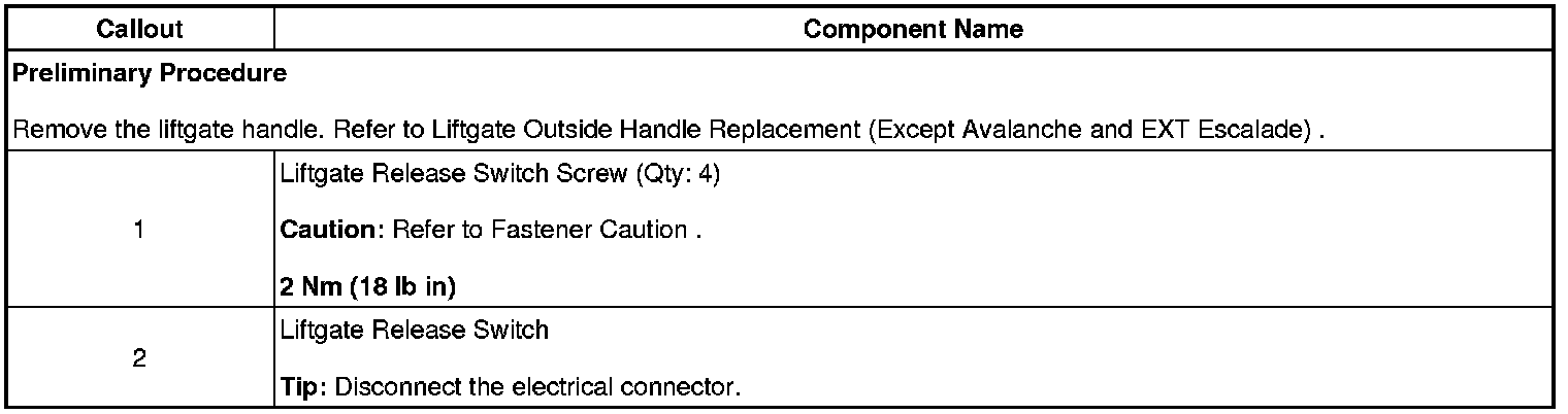 Liftgate Release Switch Replacement (Except Avalanche and Escalade EXT)