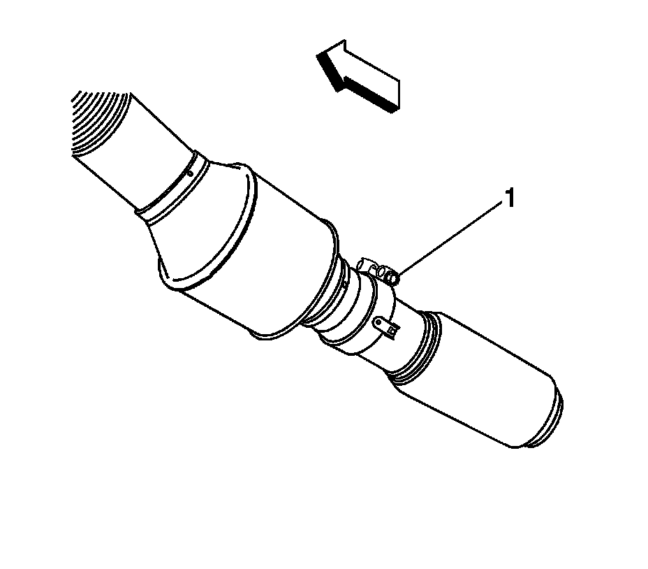 16. Loosen the catalytic converter to muffler clamp nut (1).