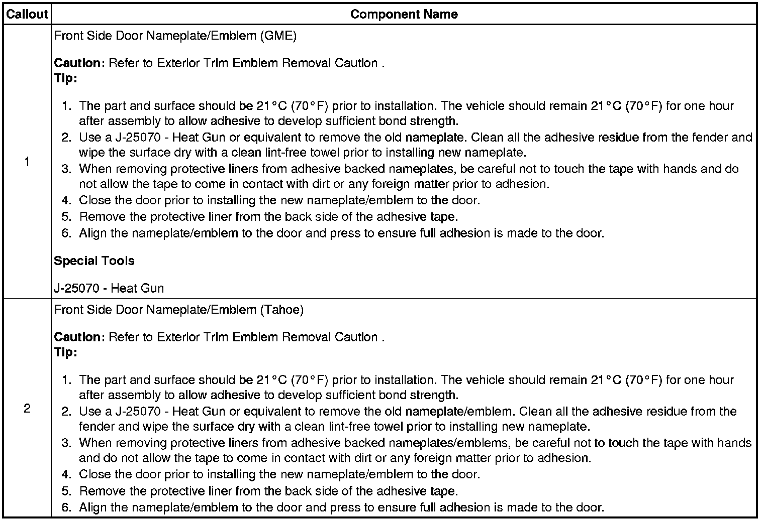 Front Side Door Emblem/Nameplate Replacement (Tahoe)
