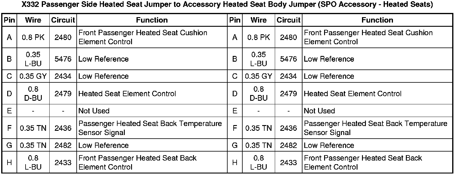 X332 Passenger Side Heated Seat Jumper to Accessory Heated Seat Body Jumper (SPO Accessory - Heated Seats)
