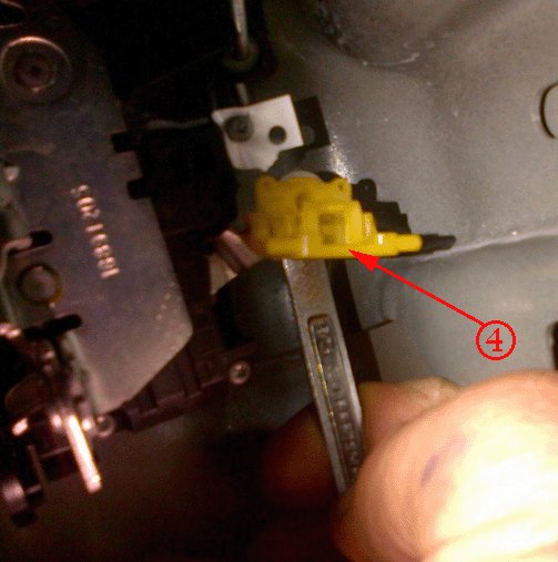 7. Using an 8 mm wrench, compress the adjustment clip (4) retaining tabs, and remove the clip from the lock assembly.