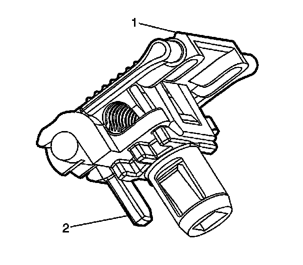 18. If the original clip was the type shown in the previous image, then the anti-rotation tab (2) on the New replacement clip must be removed at its base using cutters.