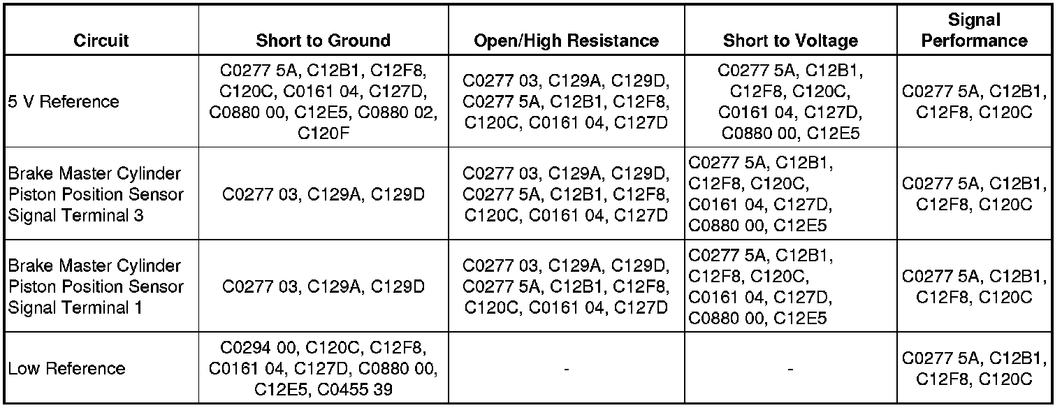 DTC C0277, C120C, C129A, C129B, C129D, C129E, C12B1, or C12F8