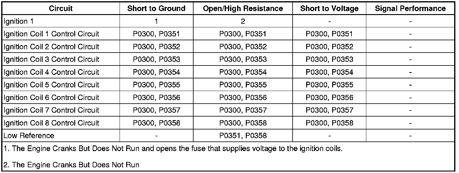 Note: A high resistance on any IC circuit can cause a misfire condition before DTCs P0351-P0358 set.
