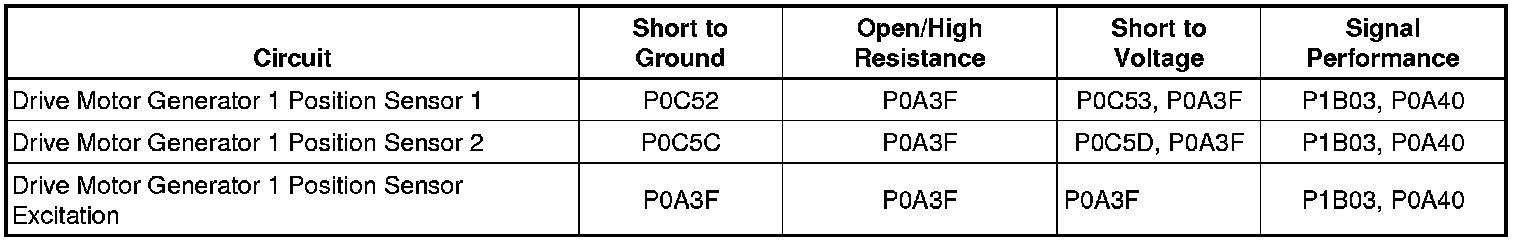 * The drive motor generator position sensor harness circuits are shielded. Improperly grounded shield circuits may cause inaccurate sensor signals.