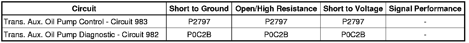 • If all circuits test normal, replace the auxiliary transmission fluid pump control module and repeat Circuit/System Verification.