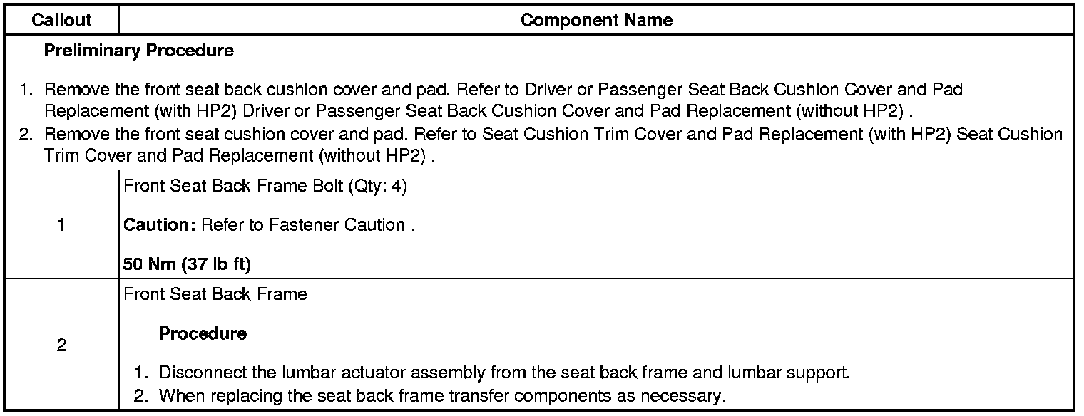Driver or Passenger Seat Back Cushion Frame Replacement