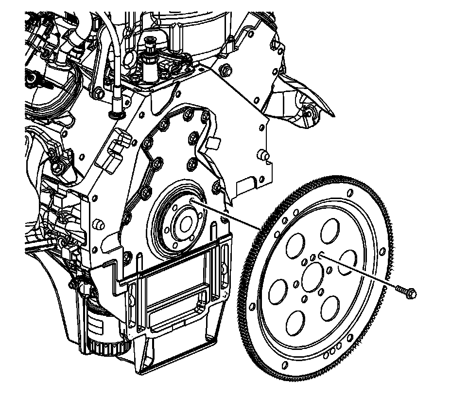 Note: The flex plate does not use a locating pin for alignment and will not initially seat against the crankshaft flange, but will be pulled onto the crankshaft by the engine flex plate bolts. This procedure requires a 3 stage tightening process.