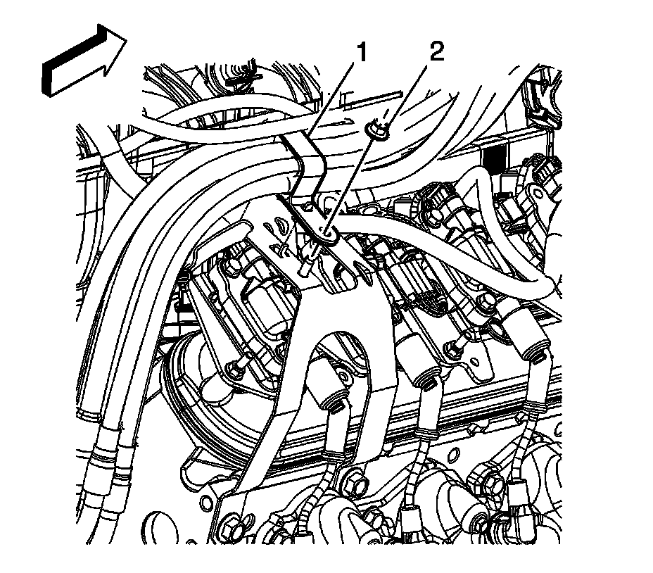 8. Remove and lower the transmission enough to gain access to the 3 phase cable bracket bolts (1). Refer to Transmission Replacement Transmission Replacement.