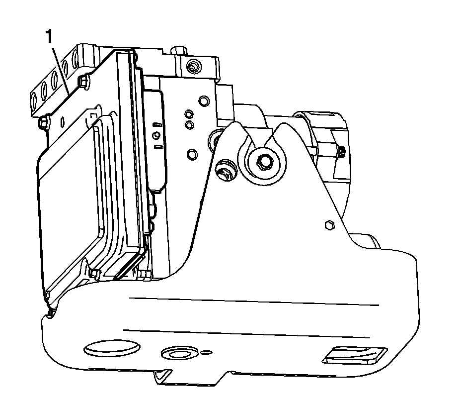 9. Using the loosened EBCM bolts as a guide, carefully pull the EBCM (1) evenly away from the BPMV to release the electrical connectors.
