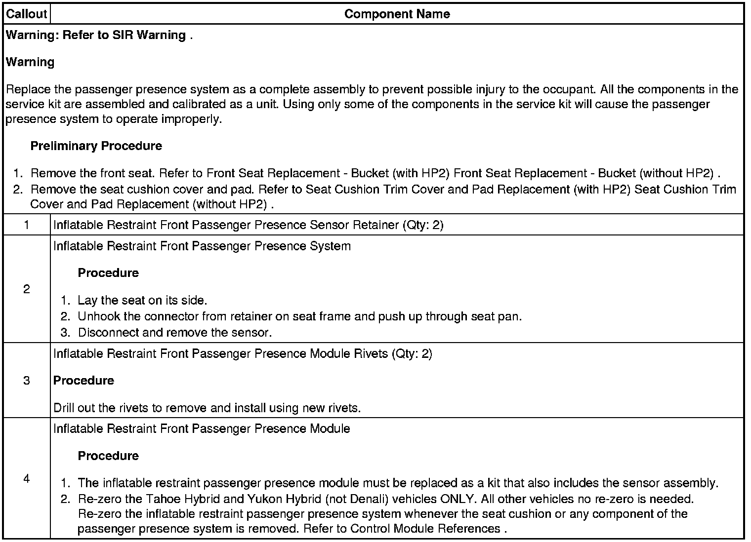 Inflatable Restraint Passenger Presence System Replacement - Front (Yukon and Tahoe Hybrids NOT Denali)