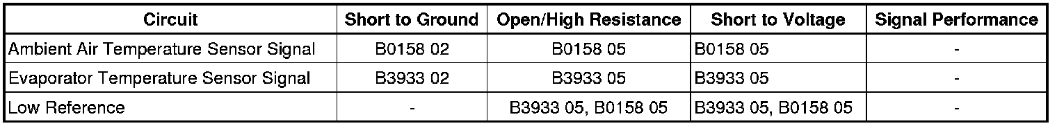 * The HVAC control module detects the sensor signal circuit is less than -35°C (-39°F).