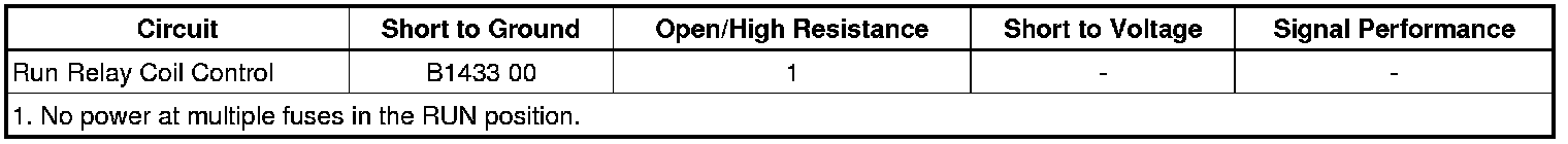 The DTC will set only when the module requests the output and there is a short to ground in the run relay coil control circuit.