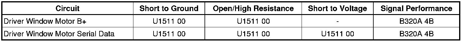 The driver window motor experiences a loss of voltage in the B+ circuit or an open/high resistance in the serial data circuit.