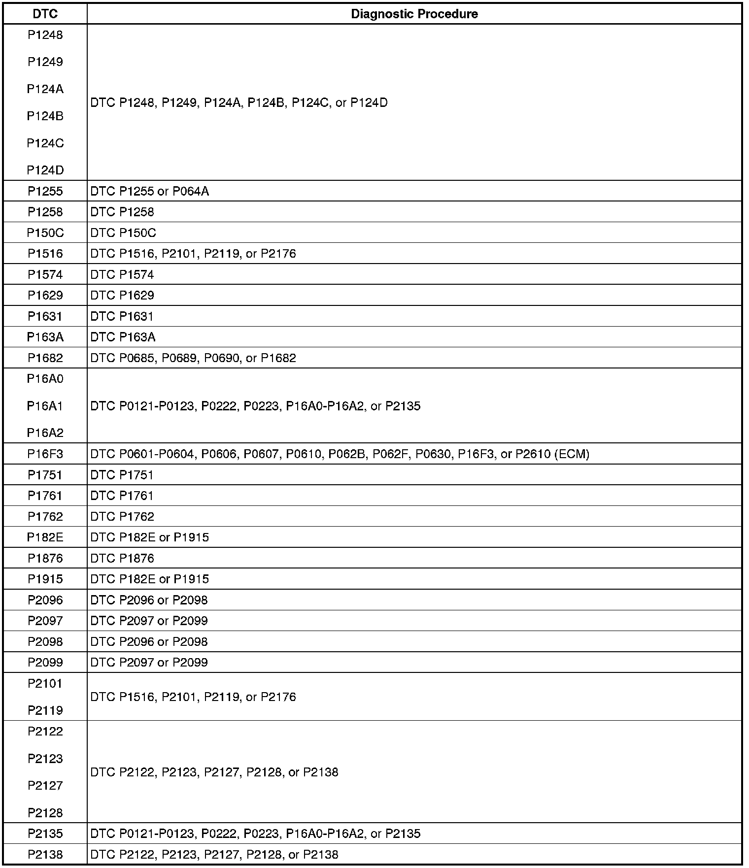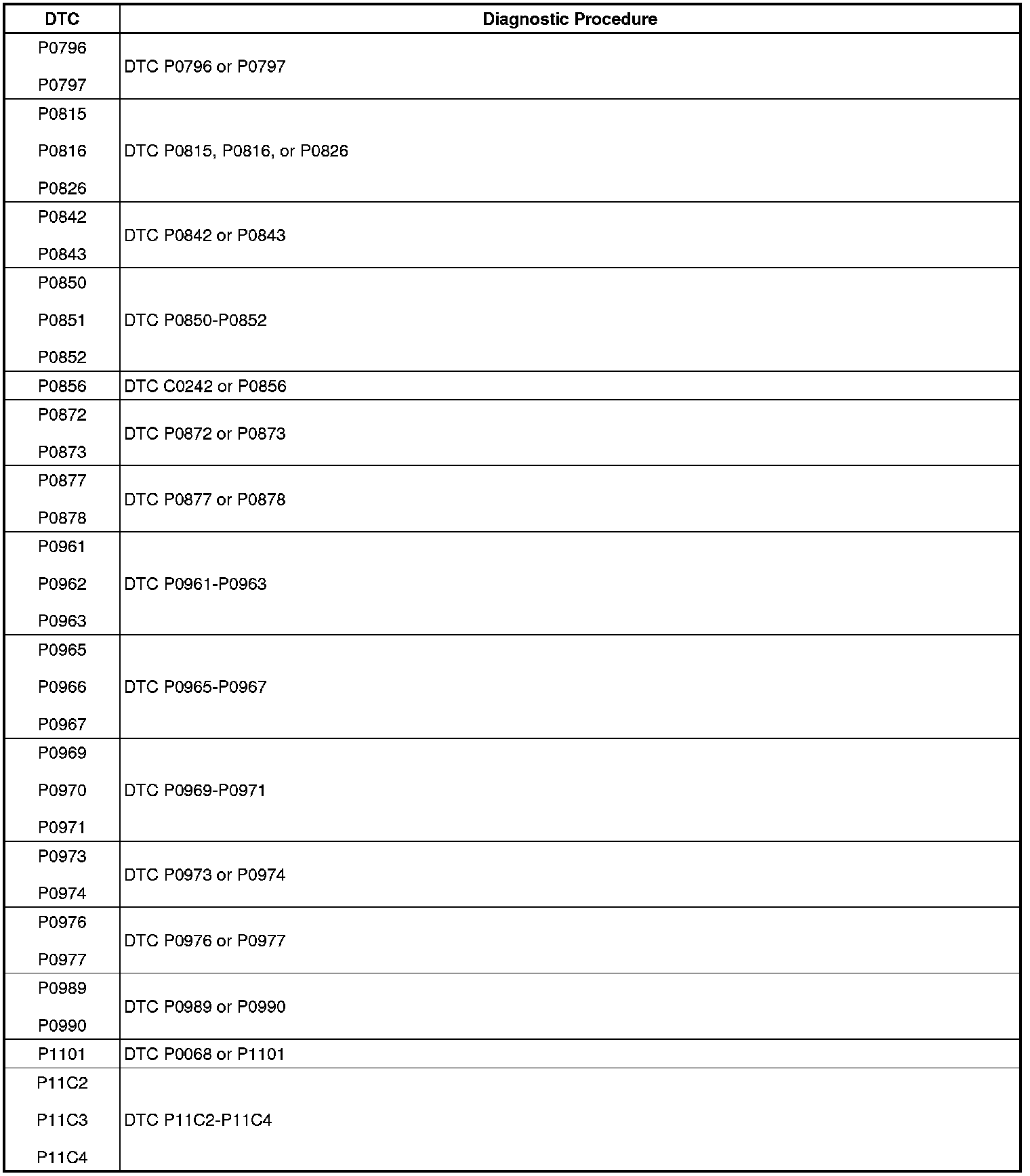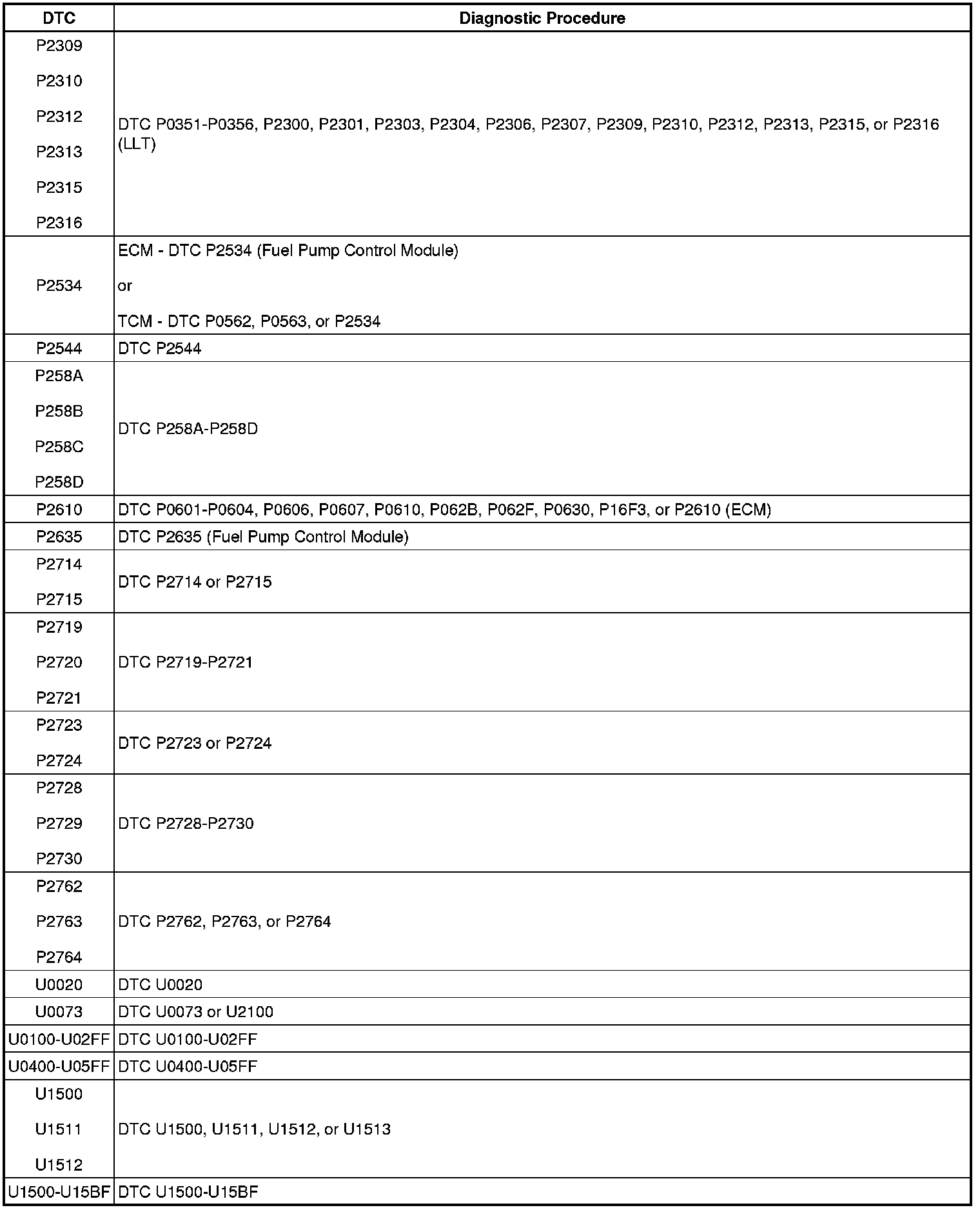 This master DTC list includes all applicable DTCs in alphanumeric order.