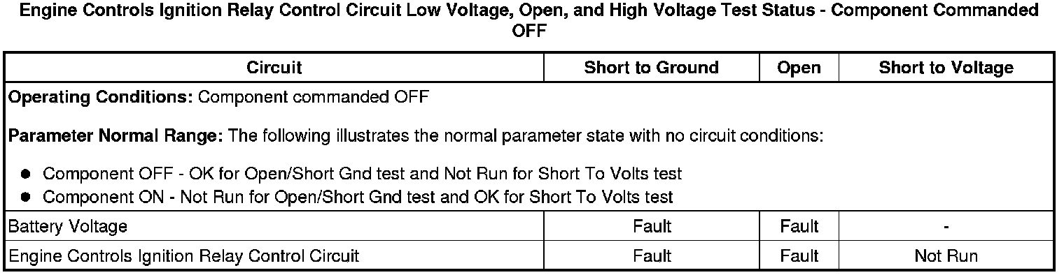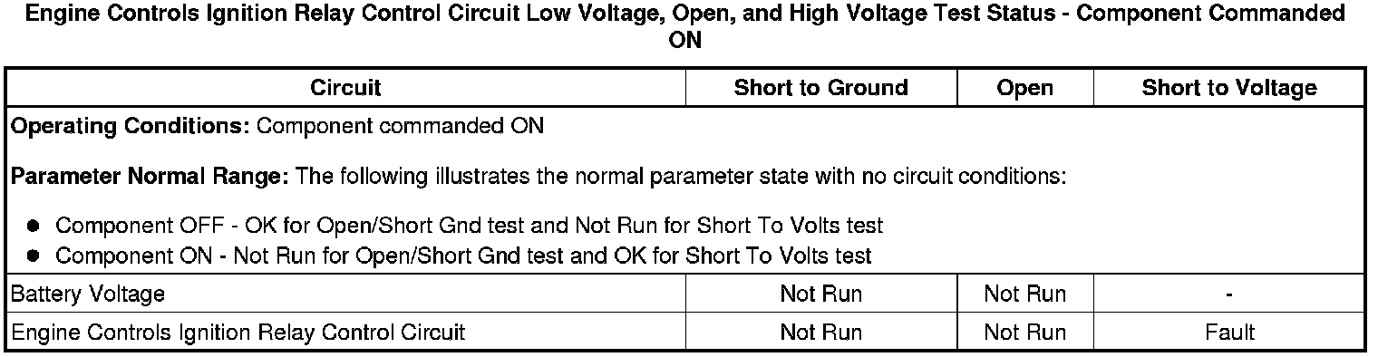 * Engine Controls Ignition Relay Control Circuit High Voltage Test Status