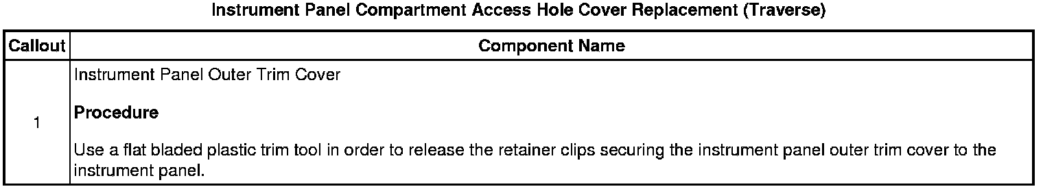 Instrument Panel Compartment Access Hole Cover Replacement (Traverse)
