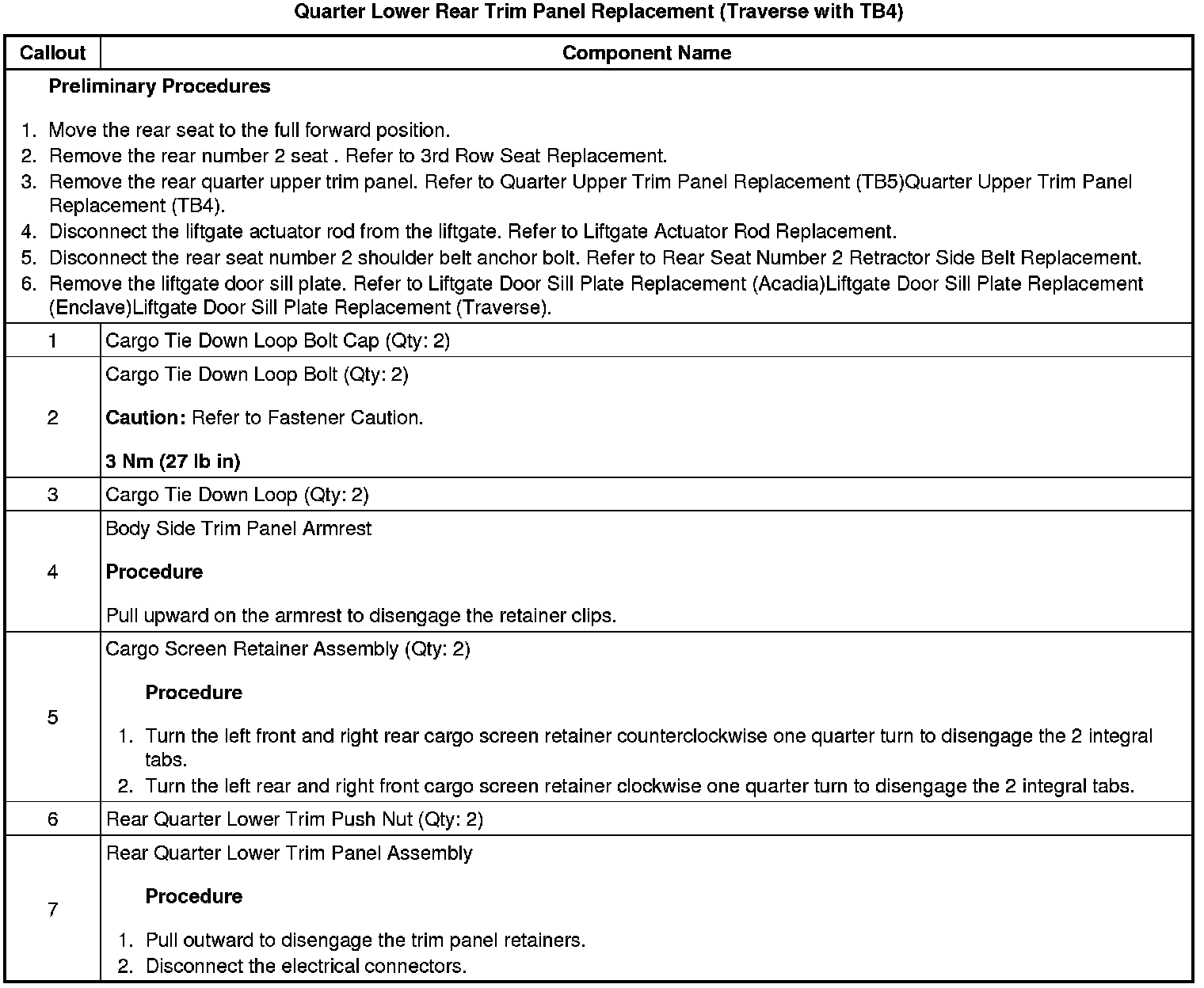 Quarter Lower Rear Trim Panel Replacement (Traverse with TB4)
