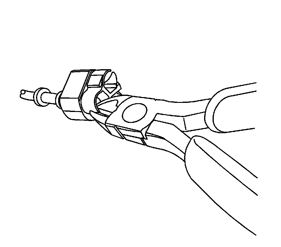5. Install the new service coaxial cable into the vehicle. Use the 4-inch jumper for the appropriate color 3-way connector housing to connect the new service coaxial cable to the new 3-way connector housing.