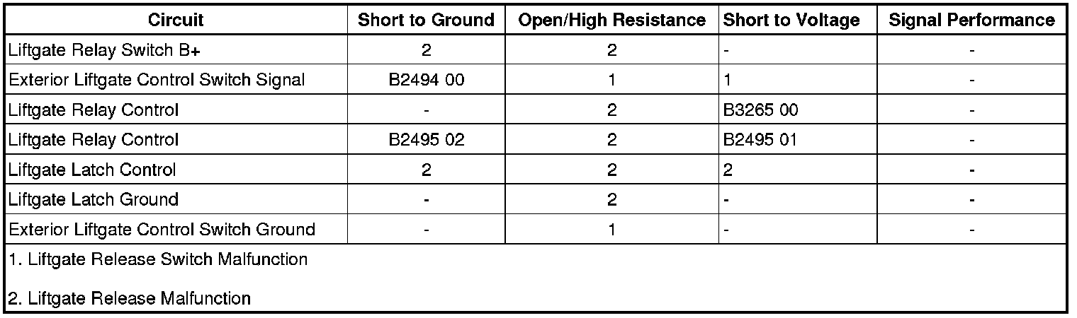 Before testing can be performed the liftgate must be opened. Refer to Opening the Liftgate Without Electrical Power Service and Repair for the appropriate procedure.