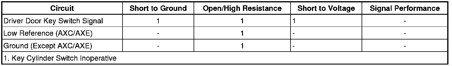 The key cylinder unlock feature will unlock all of the doors when the body control module (BCM) receives a Key Unlock Switch signal for greater than 1 second and will unlock all of the doors.