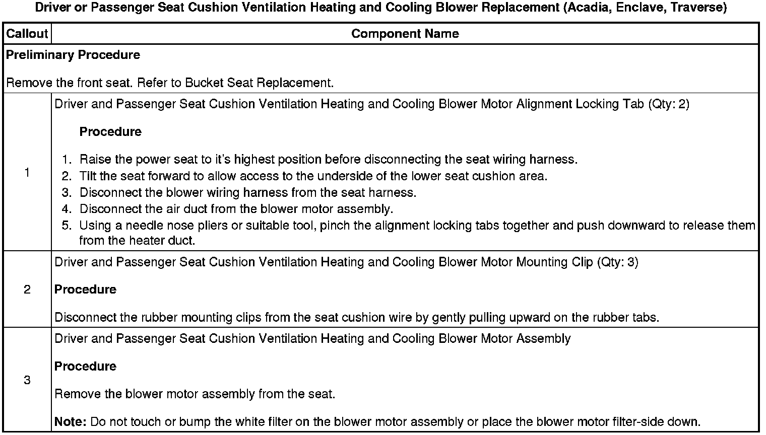 Driver or Passenger Seat Cushion Ventilation Heating and Cooling Blower Replacement (Acadia, Enclave, Traverse)