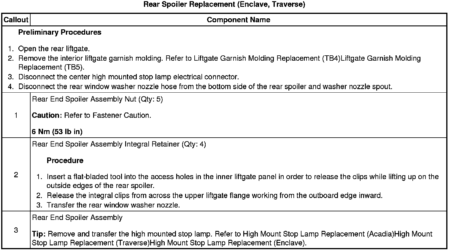 Replacement (Enclave, Traverse)
