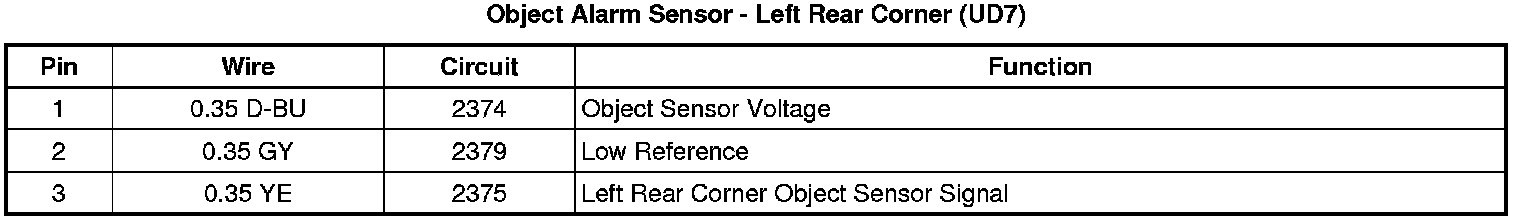 Object Alarm Sensor - Left Rear Corner (UD7)