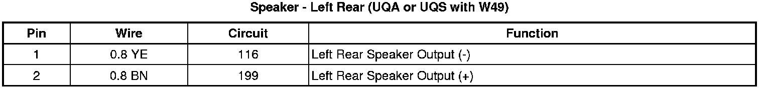 Speaker - Left Rear (UQA or UQS with W49)