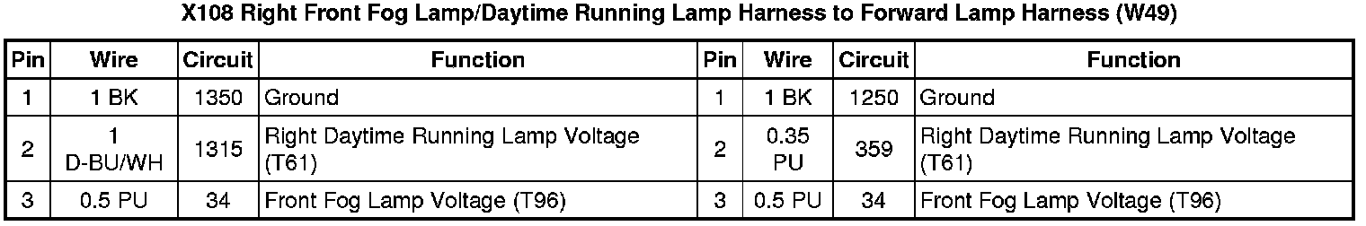 X108 Right Front Fog Lamp/Daytime Running Lamp Harness to Forward Lamp Harness (W49)