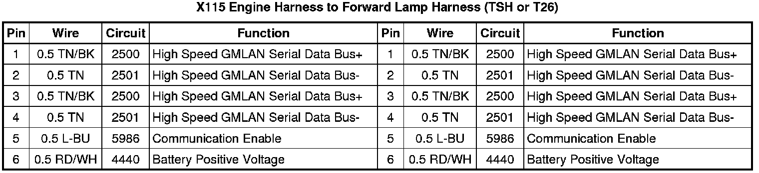 X115 Engine Harness to Forward Lamp Harness (TSH or T26)