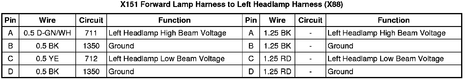 X151 Forward Lamp Harness to Left Headlamp Harness (X88)