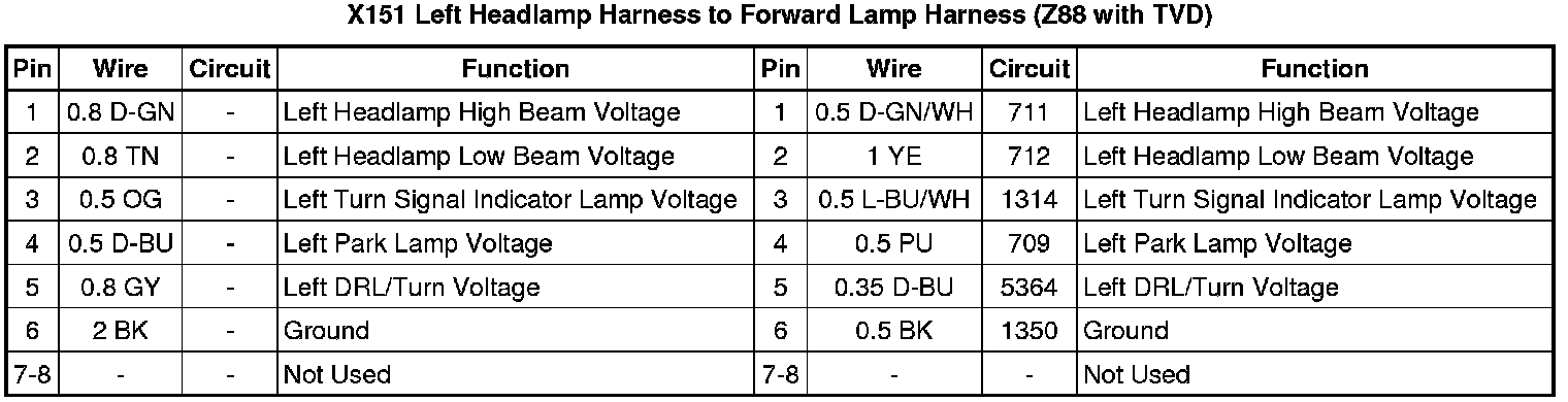 X151 Forward Lamp Harness to Left Headlamp Harness (Z88 without TVD)