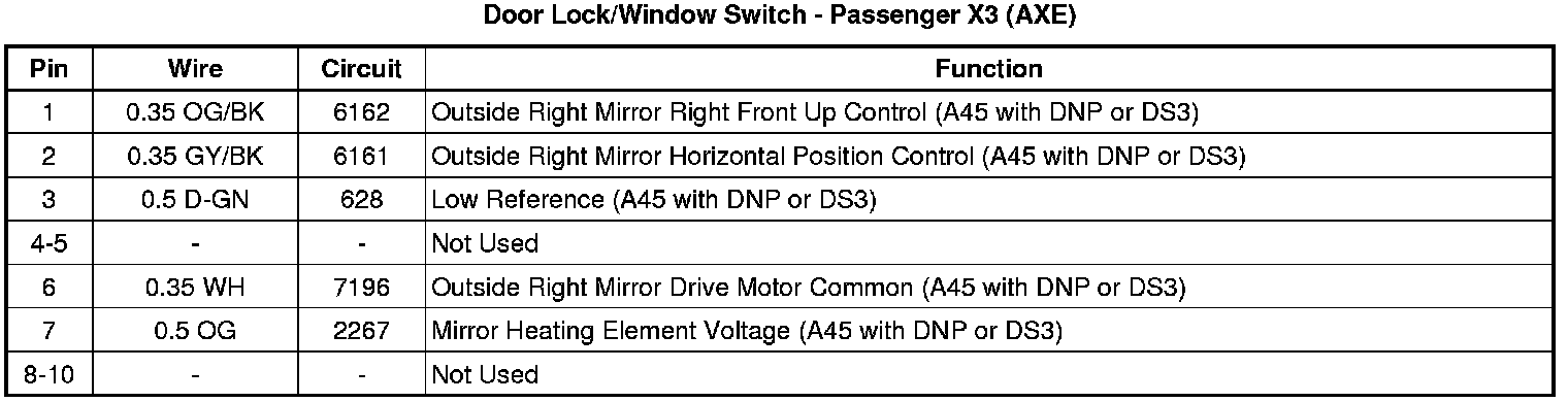 Door Lock/Window Switch - Passenger X3 (AXE)