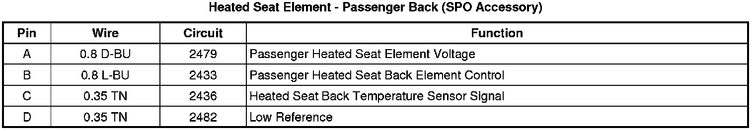 Heated Seat Element - Passenger Back (SPO Accessory)