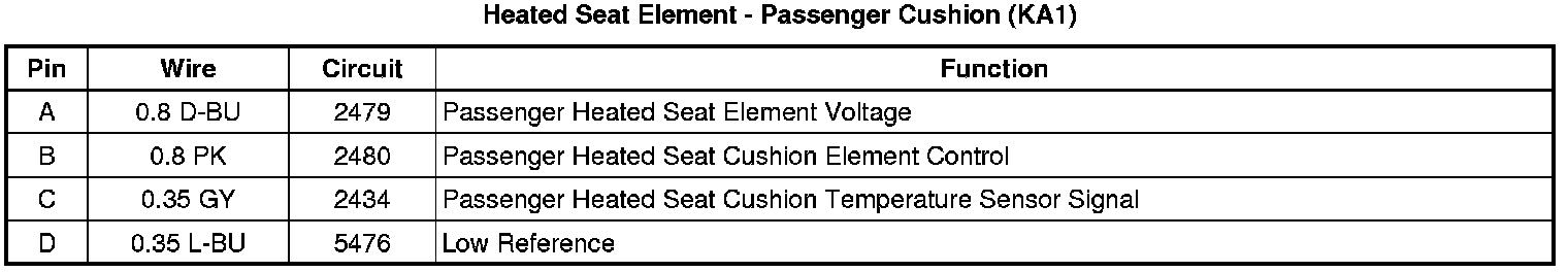 Heated Seat Element - Passenger Cushion (KA1)