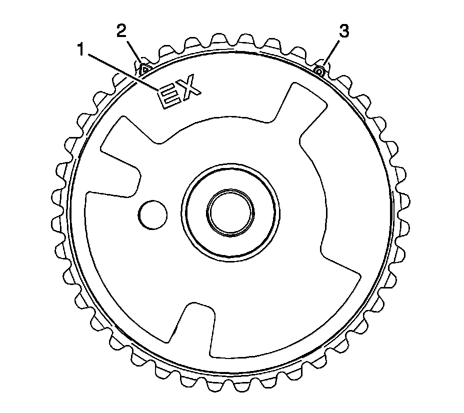 1. Ensure the proper camshaft position actuator is installed. Observe the body of the camshaft position actuator for the "EX" marking (1). The marking is for an exhaust camshaft position actuator.